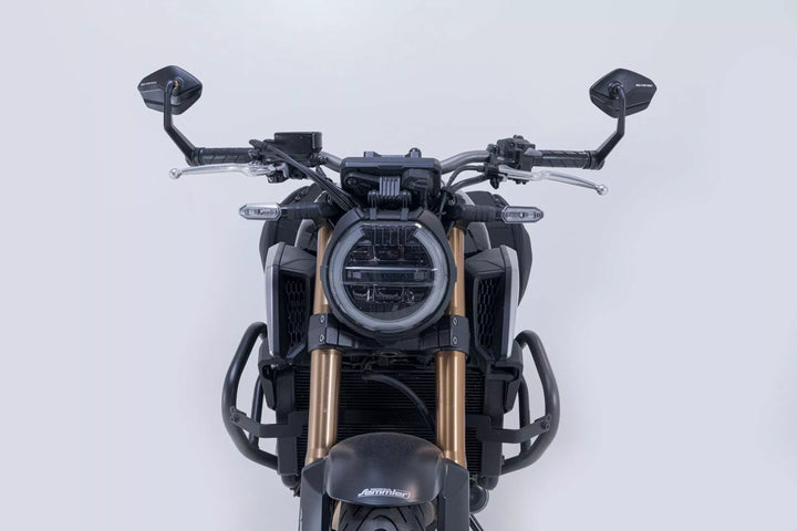 Lustra są wykonane z kute, frezowanego i czarnego anodowanego aluminium i grawerowanych szczegółów logo. W ten sposób dodają solidny, ale elegancki dotyk wasze kierownicy., Aerodynamicznie zaprojektowane ramię z okładem i ponadczasowy, prosty design luster idealnie miesza się na nowoczesnych motocyklach sportowych eiter lub nowoczesnych scramblerach w stylu retro lub kawiarni. i wszechstronne dostosowanie pola widzenia, aby zawsze mieć wyraźny widok na to, co dzieje się za tobą. Wraz z częściami montażowymi zawartymi w zestawach można je zamontować w motocyklu z doskonałym dopasowaniem i zapewnić wysokie i harmonijne wygląd dzięki starannie wybranym i skoordynowanym powierzchniom. Motocykl przyciągnie parking z tymi ekskluzywnymi lustrami i zawsze będzie mieć oko na pasażerów na drodze., Wykonane z wysokiej jakości zapomnianych i czarnych anodowanych aluminium. Zapewnia precyzyjne wyrównanie pola widzenia., Długość ramienia lustra: 157 mm. Zakres dostawy: 1 x lustrzane sporty, instrukcje montażowe 1 x i materiał montażowy.
