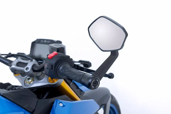 Lustra są wykonane z kute, frezowanego i czarnego anodowanego aluminium i grawerowanych szczegółów logo. W ten sposób dodają solidny, ale elegancki dotyk wasze kierownicy., Aerodynamicznie zaprojektowane ramię z okładem i ponadczasowy, prosty design luster idealnie miesza się na nowoczesnych motocyklach sportowych eiter lub nowoczesnych scramblerach w stylu retro lub kawiarni. i wszechstronne dostosowanie pola widzenia, aby zawsze mieć wyraźny widok na to, co dzieje się za tobą. Wraz z częściami montażowymi zawartymi w zestawach można je zamontować w motocyklu z doskonałym dopasowaniem i zapewnić wysokie i harmonijne wygląd dzięki starannie wybranym i skoordynowanym powierzchniom. Motocykl przyciągnie parking z tymi ekskluzywnymi lustrami i zawsze będzie mieć oko na pasażerów na drodze., Wykonane z wysokiej jakości zapomnianych i czarnych anodowanych aluminium. Zapewnia precyzyjne wyrównanie pola widzenia., Długość ramienia lustra: 157 mm. Zakres dostawy: 1 x lustrzane sporty, instrukcje montażowe 1 x i materiał montażowy.