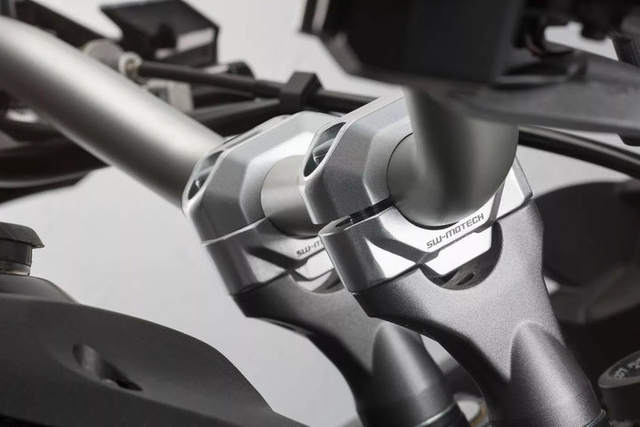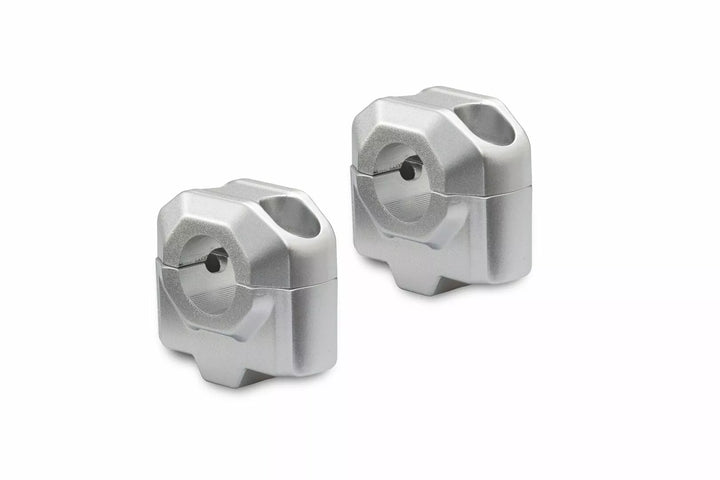 Aby uzyskać bardziej zrelaksowaną pozycję siedzącą, zastępuje oryginalny zacisk, dla Ø 22 mm kierownicy z odstępem od otworu 32-38 mm, zawarte w dostawie, 2 x pionowe pion dla kadłu