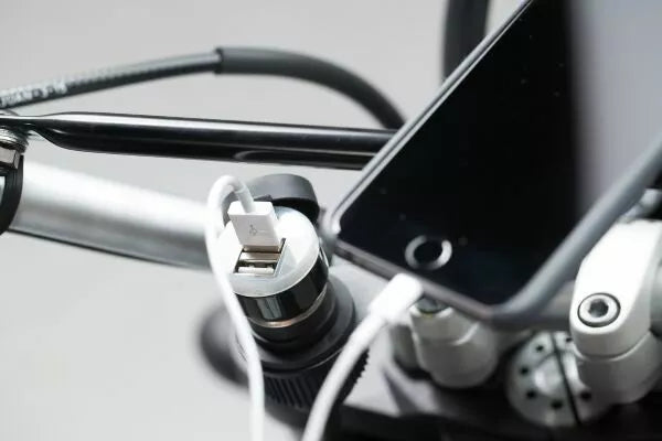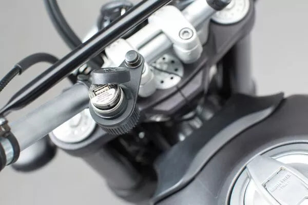 Zapalnik papierosowy zestawu Universal Electronics łączy się bezpośrednio z systemem zasilania roweru, możesz naładować smartfon lub urządzenie GPS za pomocą dołączonego adaptera USB, montażowego wspornika może przymocować do wirtualnie w Merive w kierunku MeriveBar lub wróżbiarce, UsB na owiewce, do 1000 MA/5 MA/5 MA/5 MA/5 MA/5 V, bezpośrednie połączenie z motocyklem z wiązką kablową (12 V), adapter 1 x USB, 1 x płaski bezpiecznik, 1 x płytki montażowe dla zacisków kierownicy 22 mm / 28 mm z odstępem od otworu odwiertu 30–40,5 mm, instrukcje montażowe, materiał montażowy
