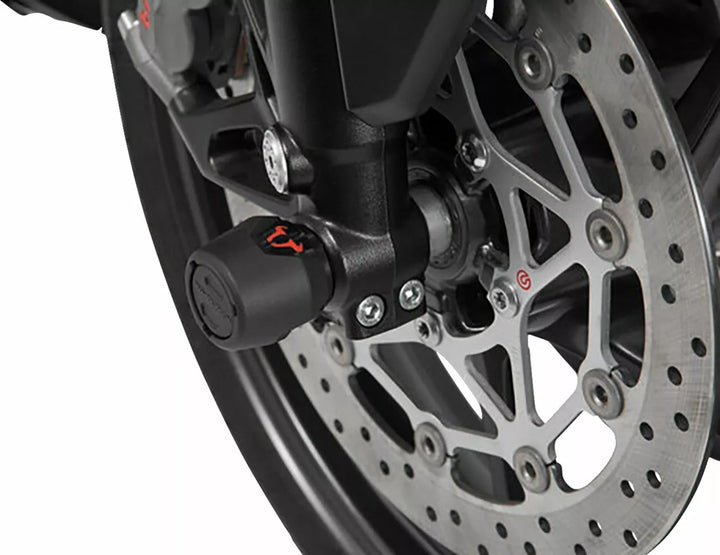 Solidny rdzeń wykonany z plastiku wzmocnionego włóknem szklanym (PA6 GF30), dyskretnej podkładki suwakowej wykonanej z odpornego na ścieranie poliamidu, dobrych właściwości przesuwnych i awaryjnych funkcji roboczych, łatwe montaż z gwintem osi i przekładki specyficzne dla motocykla, powlekanie, matowa czarna powierzchnia z wypolerowanym logo byka w kolorze czerwonym, zabezpieczeniem przedsiębiorstwa forku.