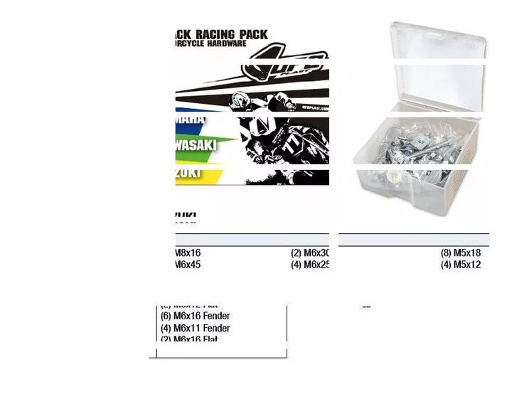 Zawiera asortyment powszechnie używanych śrub, śrub, podkładek i klipsów, które mogą zapisać dzień na torze,