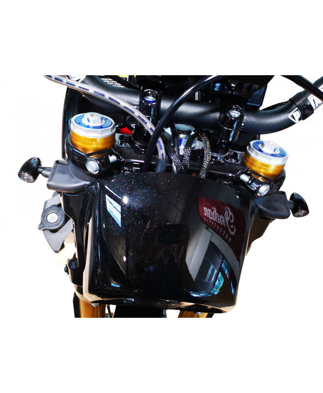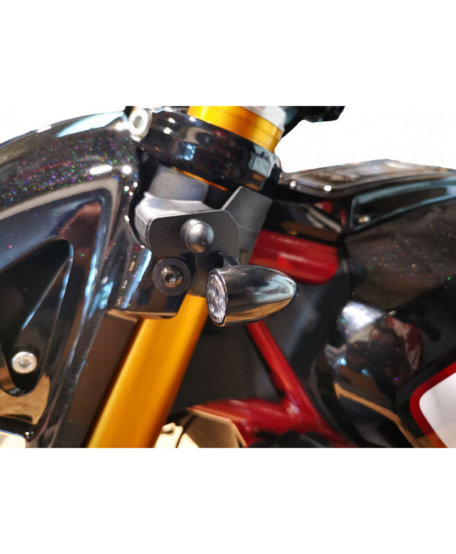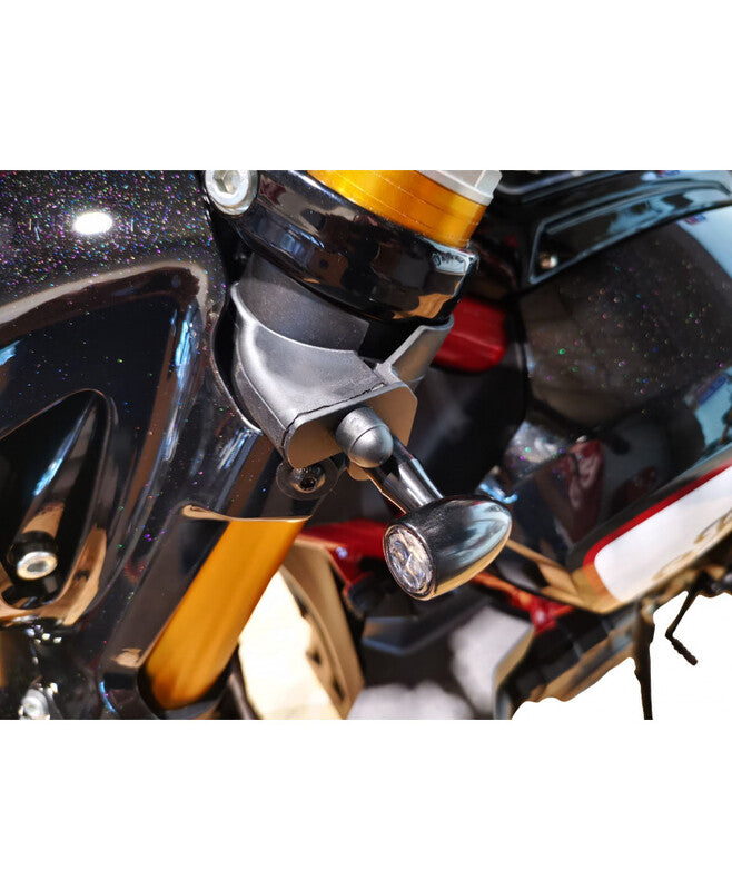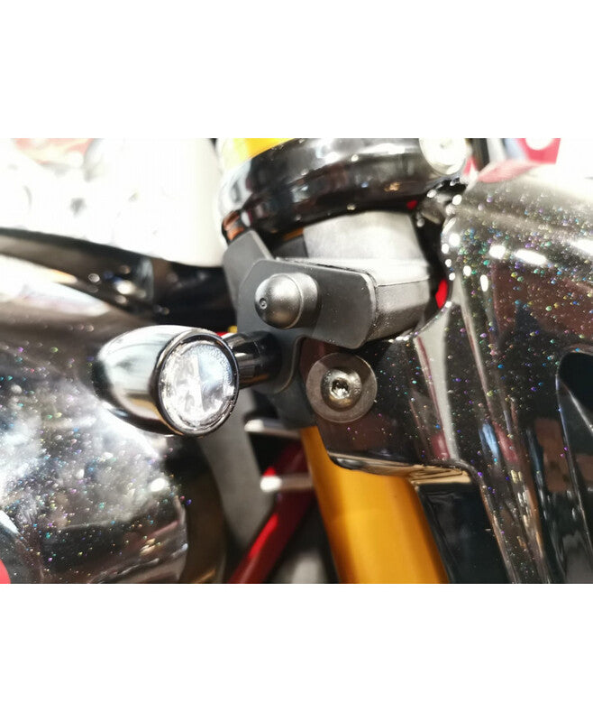Z V Części COCI002AV Czy możesz łatwo i stylowo złożyć Uniwersalne mrugnięcia na twoim Indian FTR 1200. Płyty są Nasiona z stali stalowej o grubości 2 mm i traktowane z Matt Black Epoksyd Lakier Aby wytrzymać pogodę i zużycie, jednocześnie idealnie wtapiając się z oryginalnym projektem.