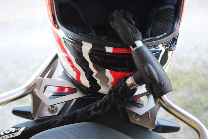 Wektor helmchain+ jest gładki i skuteczny zamek, idealny dla motocyklistów, takich jak Chcesz zabezpieczyć hełm, nie nosząc go. Prosty, bezpieczny i łatwy do przyniesienia!