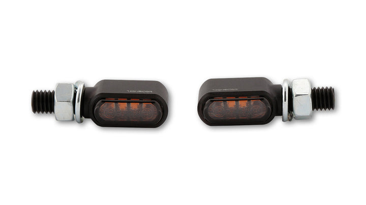 Wskaźniki LED CNC Highsider Little Bronx, czarne, przyciemnione szkło, zatwierdzone przez E, (para) 204-2860
