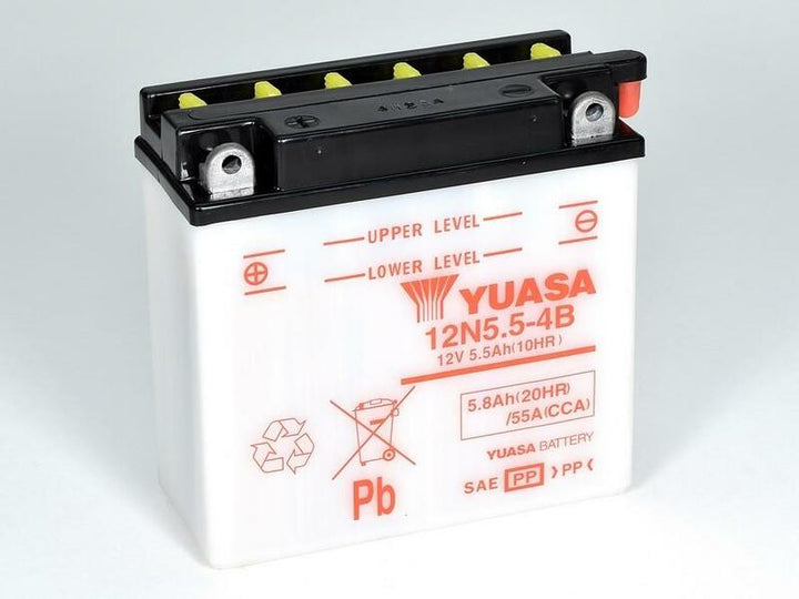 YUASA 12N5.5-4B to konwencjonalny akumulator 12V, zaprojektowany do motocykli, skuterów śnieżnych i kosiarek do trawy. Oferuje wysoką moc rozruchową, solidną trwałość i niezawodną wydajność.