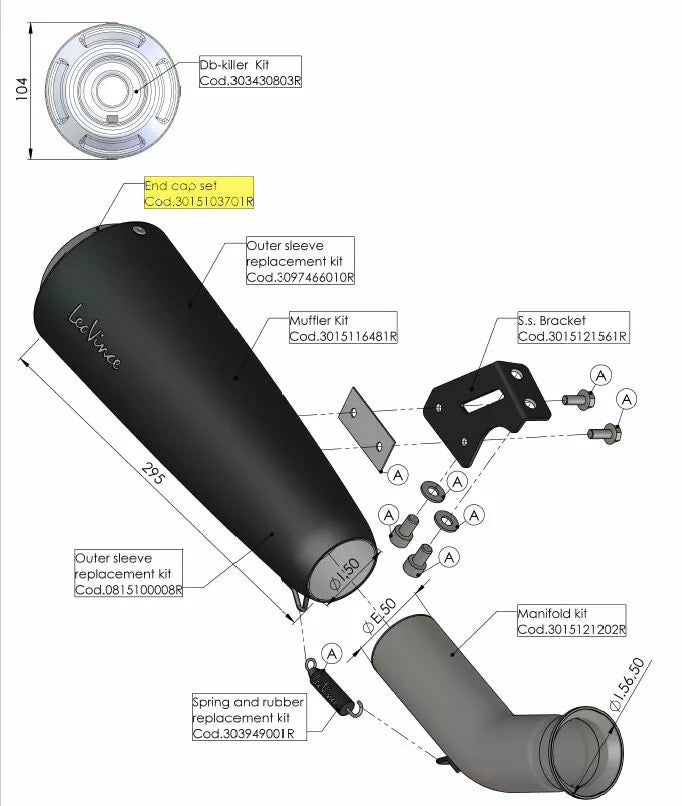Części zamienne wydechu Leovince, czapki końcowe, dostępne w stali nierdzewnej lub węglku