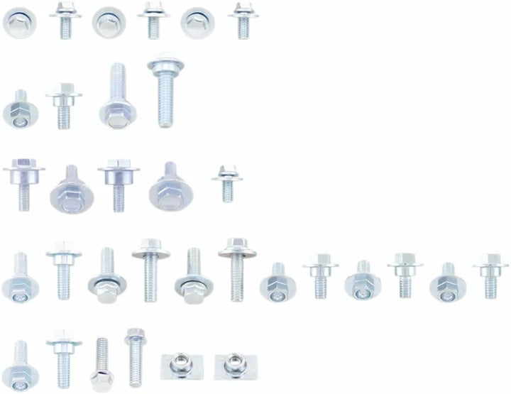 Obejmuje wszystkie fabryczne repliki mocowania i tuleje dla przednich błotników, tylnego błotnika, przednich płyty rejestracyjnej, osłony widelców, siedziska, paneli bocznych i osłonek chłodnicy w jednym zestawie