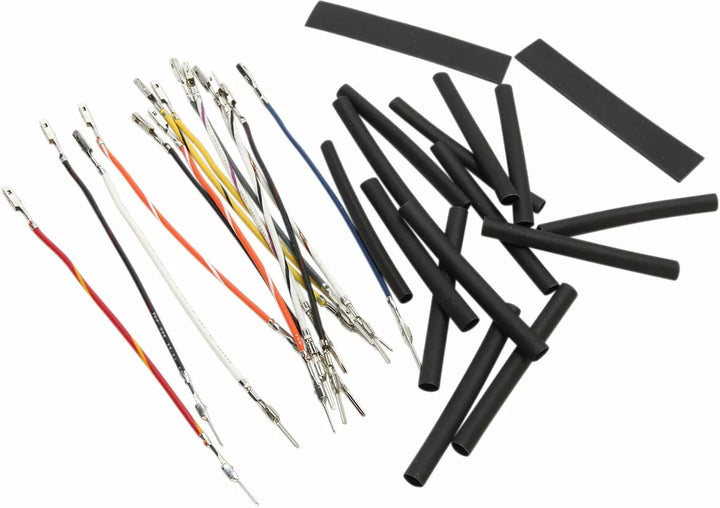 Wszystkie elementy potrzebne do pomyślnego rozszerzenia okablowania na zestaw przełączników kierownicy H-D OEM, uprzęże obejmują zarówno męskie, jak i żeńskie zaciski molex na każdym końcu, zestaw zawiera drut kurczenie się ciepła i drut dopasowywania kolorów, wykonany w U.A.