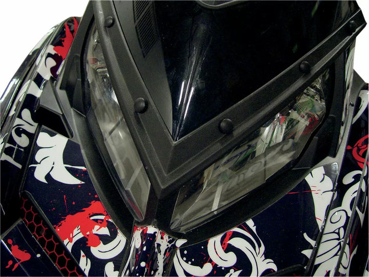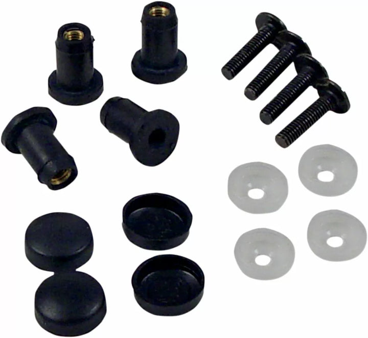 Zestaw zawiera cały sprzęt konieczny do montażu przedniej szyby do większości sań, elementy łączniki rozszerzają się po dokręceniu, aby stworzyć bezpieczne dopasowanie, zawiera cztery gumowe kotwice, śruby, bazowe i czapki Tours do montażu przednich przedni