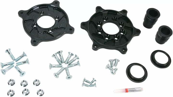 Obejmuje adaptery pierścienia nośnika (2) oraz wszystkie przekładki i sprzęt do montażu wirnika hamulcowego typu OE, modułowe nośniki umożliwiają jeźdźcom szybkie i łatwe na przemian zestawu wyścigów koła/opon dla różnych powierzchni toru, zestawy pierścieni nośnych są kluczowymi komponentami systemu Pro Series systemu Pro Series