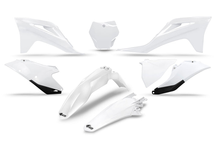UFO tworzywa sztuczne są znane ze swojej jakości i odporności na użytkowanie w terenie. Są one zaprojektowane jak plastyki OEM i są łatwe do zamontowania. Są one używane przez dzisiejsze najlepsze drużyny MXGP i tworzą mistrzów świata. Typ OEM wykonany z UV, Choc i Odporny na skręt