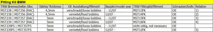 Zestaw obejmuje krzaki, podkładki i przekładki