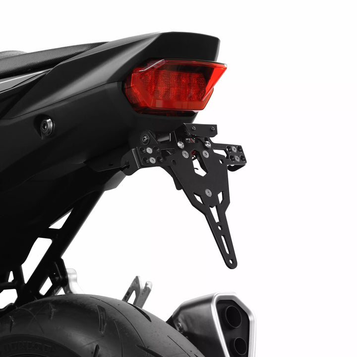 Uchwyt tablicy rejestracyjnej jest wyjątkowo trwałym i odpornym na pogodę., Czarny proszek powleczony. , Uchwyt rejestracyjny może być używany do dowolnego rodzaju tablicy rejestracyjnej (szerokość 175 mm)., Nie wymaga modyfikacji owiewki., Storessowa regulacja kąta rake., Obsługa wskaźnika regulowana w 3 pozycjach. Płyta., Specjalne mocowanie światła wskaźnika (sprzedawane osobno) wymagane dla świateł wskaźników magazynowych., Zestaw obejmuje: 1 uchwyt rejestracyjny w tym. Zestaw montażowy., LED Tablica rejestracyjna „E aprobnved”. Wsparcie., Wsparcia z wsparciem. Of: Niemcy, Słowenia, Chorwacja i Wielka Brytania.