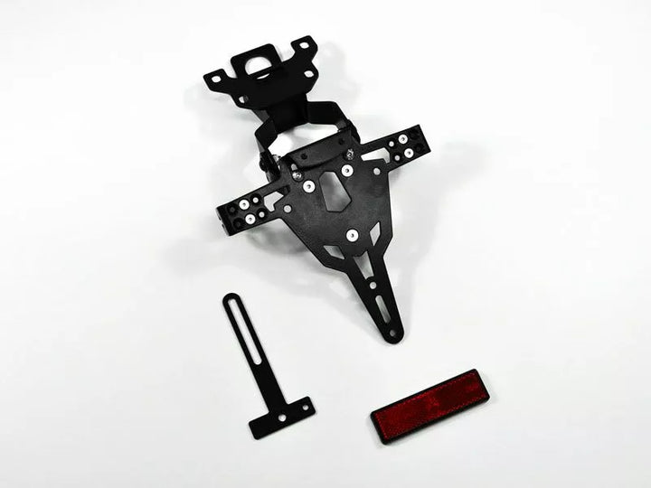 Uchwyt tablicy rejestracyjnej jest wyjątkowo trwałym i odpornym na pogodę., Czarny proszek powleczony. , Uchwyt rejestracyjny może być używany do dowolnego rodzaju tablicy rejestracyjnej (szerokość 175 mm)., Nie wymaga modyfikacji owiewki., Storessowa regulacja kąta rake., Obsługa wskaźnika regulowana w 3 pozycjach. Płyta., Specjalne mocowanie światła wskaźnika (sprzedawane osobno) wymagane dla świateł wskaźników magazynowych., Zestaw obejmuje: 1 uchwyt rejestracyjny w tym. Zestaw montażowy., LED Light Light „E zatwierdzony”. Wsparcie., Wsparcia z wsparciem.