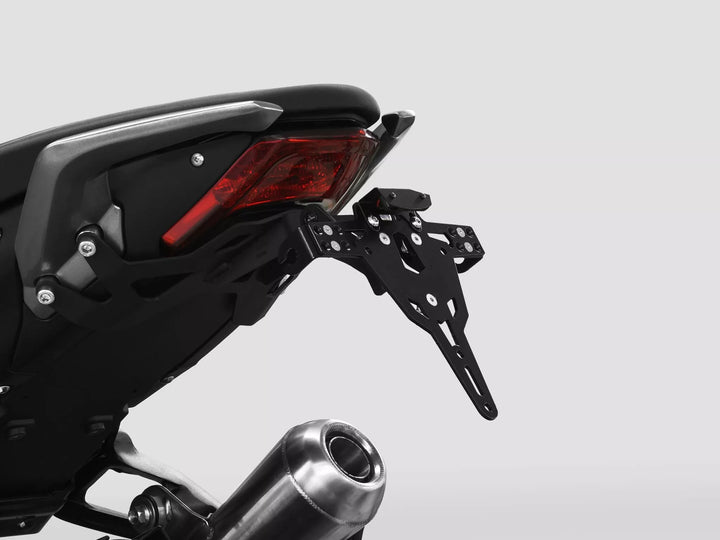 Uchwyt tablicy rejestracyjnej jest wyjątkowo trwałym i odpornym na pogodę., Czarny proszek powleczony. , Uchwyt rejestracyjny może być używany do dowolnego rodzaju tablicy rejestracyjnej (szerokość 175 mm)., Nie wymaga modyfikacji owiewki., Storessowa regulacja kąta rake., Obsługa wskaźnika regulowana w 3 pozycjach. Płyta., Specjalne mocowanie światła wskaźnika (sprzedawane osobno) wymagane dla świateł wskaźników magazynowych., Zestaw obejmuje: 1 uchwyt rejestracyjny w tym. Zestaw montażowy., LED Light Light „E zatwierdzony”. Wsparcie., Wsparcia z wsparciem.