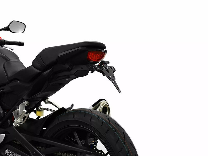 Uchwyt tablicy rejestracyjnej jest wyjątkowo trwałym i odpornym na pogodę., Czarny proszek powleczony. , Uchwyt rejestracyjny może być używany do dowolnego rodzaju tablicy rejestracyjnej (szerokość 175 mm)., Nie wymaga modyfikacji owiewki., Storessowa regulacja kąta rake., Obsługa wskaźnika regulowana w 3 pozycjach. Płyta., Specjalne mocowanie światła wskaźnika (sprzedawane osobno) wymagane dla świateł wskaźników magazynowych., Zestaw obejmuje: 1 uchwyt rejestracyjny w tym. Zestaw montażowy., LED Light Light „E zatwierdzony”. Wsparcie., Wsparcia z wsparciem.