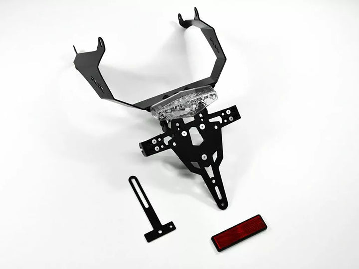 Uchwyt tablicy rejestracyjnej jest wyjątkowo trwałym i odpornym na pogodę., Czarny proszek powleczony. , Uchwyt rejestracyjny może być używany do dowolnego rodzaju tablicy rejestracyjnej (szerokość 175 mm)., Nie wymaga modyfikacji owiewki., Storessowa regulacja kąta rake., Obsługa wskaźnika regulowana w 3 pozycjach. Płyta., Specjalne mocowanie światła wskaźnika (sprzedawane osobno) wymagane dla świateł wskaźników magazynowych., Zestaw obejmuje: 1 uchwyt rejestracyjny w tym. Zestaw montażowy., LED Light Light „E zatwierdzony”. Wsparcie., Wsparcia z wsparciem.