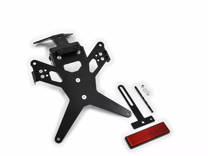 Uchwyt tablicy rejestracyjnej jest wyjątkowo trwałym i odpornym na pogodę., Czarny proszek powleczony. , Uchwyt rejestracyjny może być używany do dowolnego rodzaju tablicy rejestracyjnej (szerokość 175 mm)., Nie wymaga modyfikacji owiewki., Storessowa regulacja kąta rake., Obsługa wskaźnika regulowana w 3 pozycjach. Płyta., Specjalne mocowanie światła wskaźnika (sprzedawane osobno) wymagane dla świateł wskaźników magazynowych., Zestaw obejmuje: 1 uchwyt rejestracyjny w tym. Zestaw montażowy., LED Light Light „E zatwierdzony”. Wsparcie., Wsparcia z wsparciem. Oświadczenie: Ważne: Dla użycia tego uchwytu tablicy rejestracyjnej z sygnałami Turn Modele Ducati (2015 - 2015) Potrzebny jest specjalny uchwyt (adapter sygnałowy Zieger Turn Signal. Części Europy Numer części: 20301971. Numer dostawcy: 10005790).